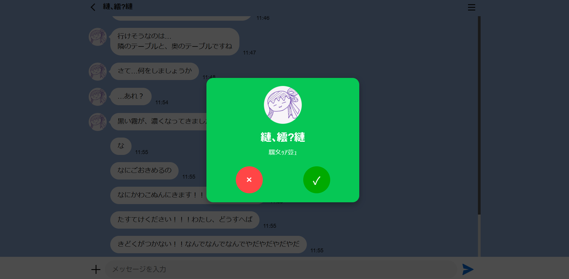 実際に少女とやりとりをしている画面。ゆる絵アイコンが愛らしい。